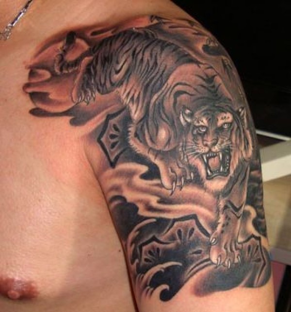 老虎纹身图片手臂下山虎纹身图片纹身作品_臂部纹身图案大全_纹身图吧