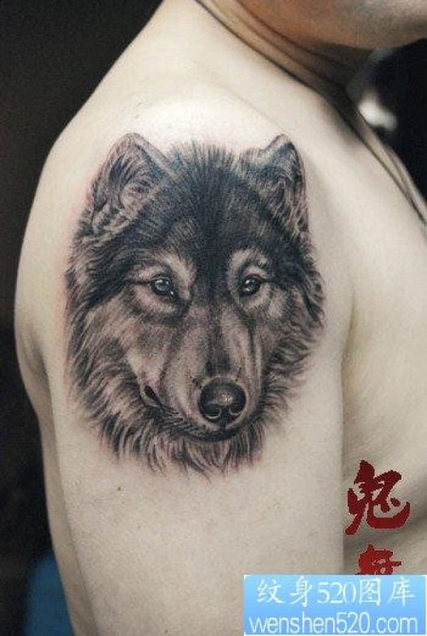 男生手臂经典超帅的黑灰狼头纹身作品_臂部纹身图案大全_纹身图吧