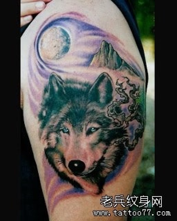 手臂一幅呆呆的狼头纹身作品_臂部纹身图案大全_纹身图吧
