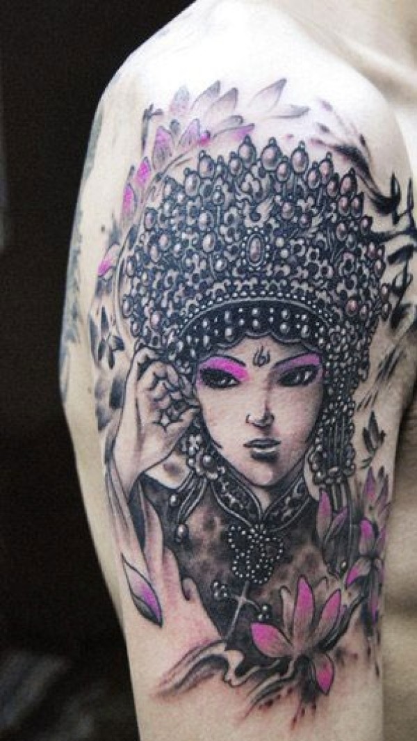手臂漂亮经典的美女花旦纹身图片_臂部纹身图案大全_纹身图吧