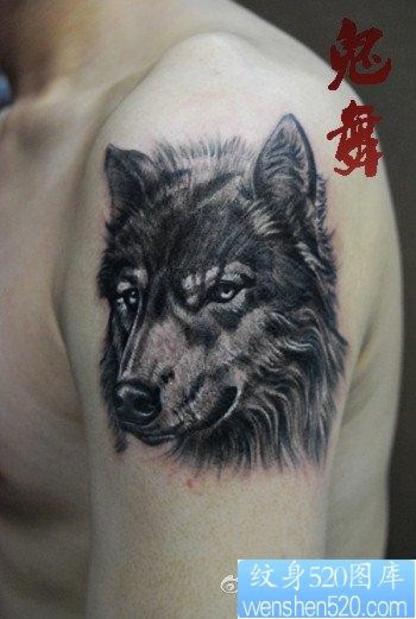 手臂一幅脸部严肃的狼头纹身作品_臂部纹身图案大全_纹身图吧