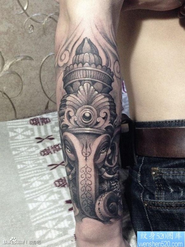 小臂上一张精致的象神纹身图案_臂部纹身图案大全_纹身图吧