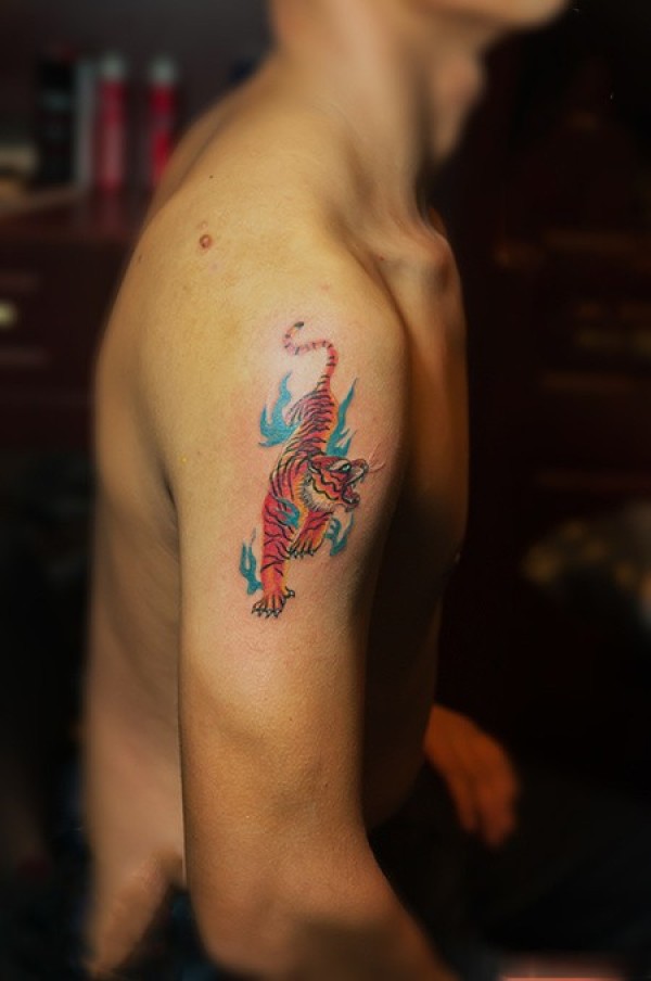 男生彩色老虎手臂纹身图案_臂部纹身图案大全_纹身图吧