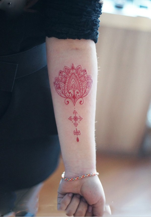 时尚小手臂红色梵花纹身图案_臂部纹身图案大全_纹身图吧
