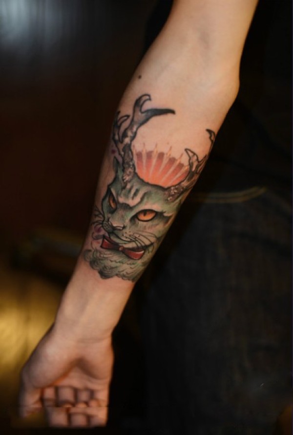 创意麋鹿角猫手臂纹身图案_臂部纹身图案大全_纹身图吧