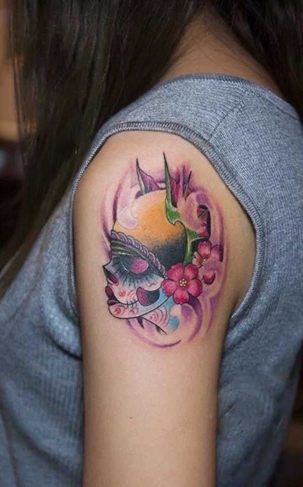 创意面具女手臂纹身图案_臂部纹身图案大全_纹身图吧