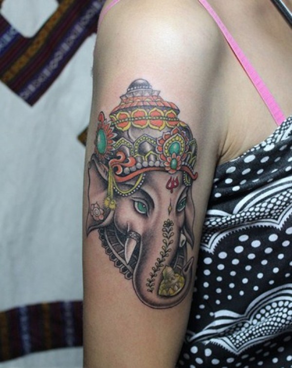 女子手臂象神头像纹身_臂部纹身图案大全_纹身图吧