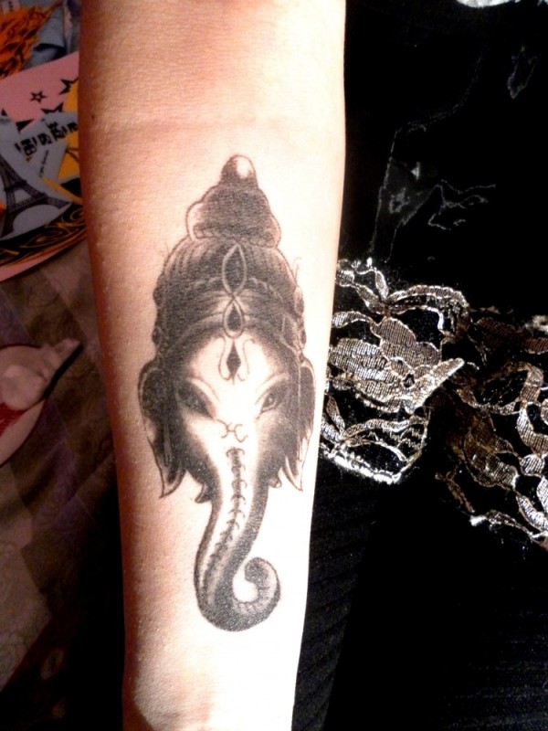 手臂黑色象神头作品_臂部纹身图案大全_纹身图吧