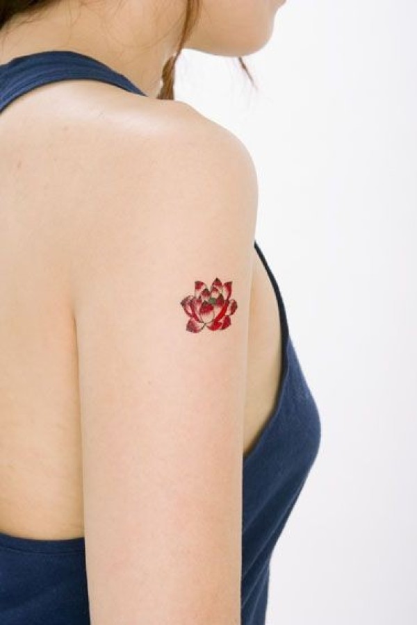 手臂上漂亮的红色莲花纹身_臂部纹身图案大全_纹身图吧