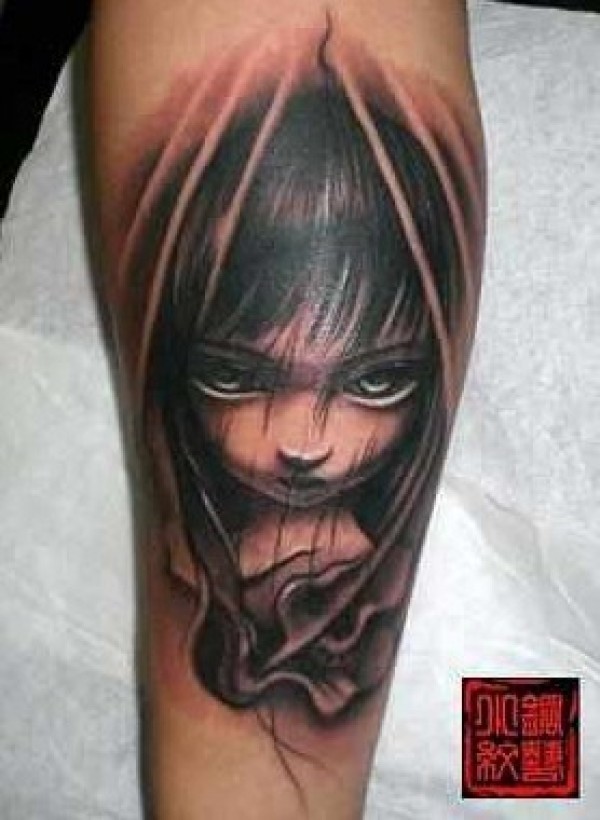 恐怖的手臂逼真小人头_臂部纹身图案大全_纹身图吧