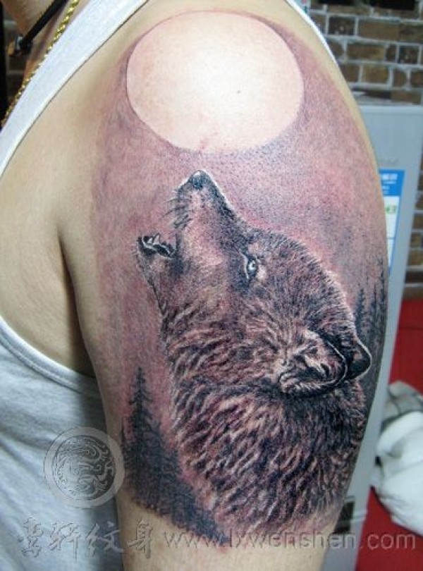 男士手臂超酷的苍狼望月纹身图案_臂部纹身图案大全_纹身图吧