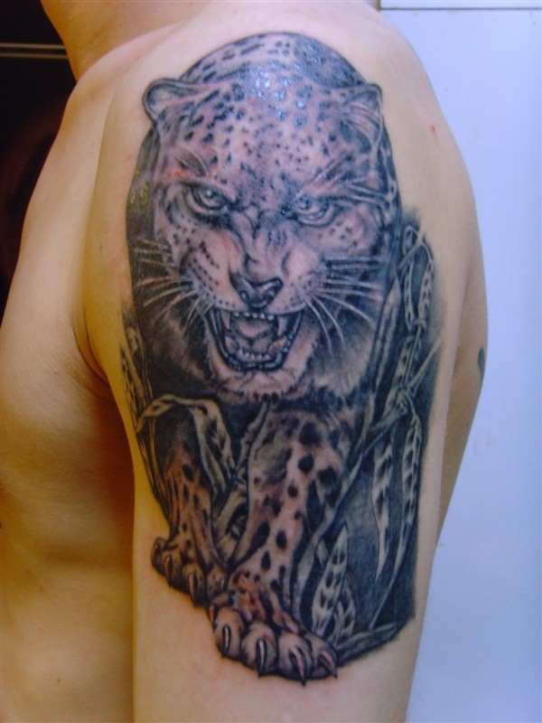 凶猛的花豹上臂纹身图案_臂部纹身图案大全_纹身图吧