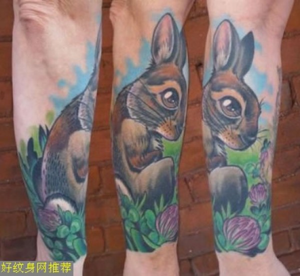 小臂上各种造型彩绘兔子纹身图案站在草地上的_臂部纹身图案大全_纹身图吧