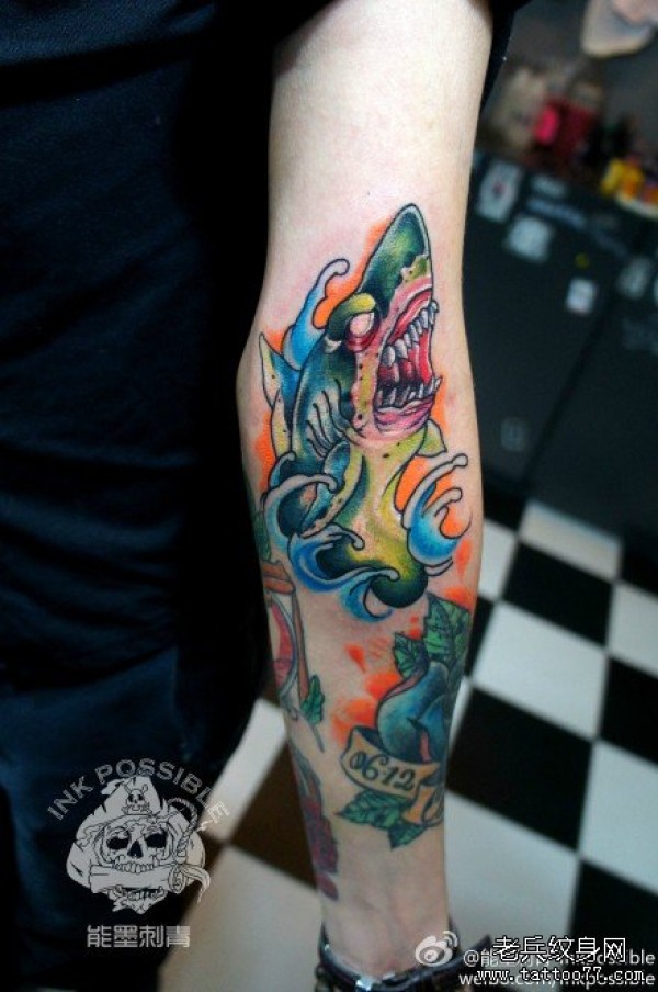 手臂时尚很酷的一款鲨鱼纹身图案_臂部纹身图案大全_纹身图吧