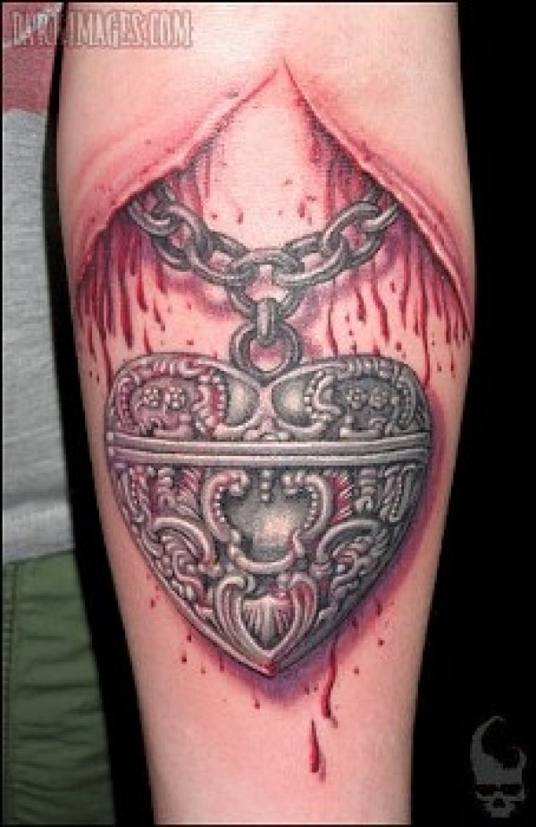 手臂撕皮爱心锁链纹身图案_臂部纹身图案大全_纹身图吧