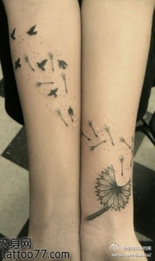 手臂流行时尚的蒲公英鸽子纹身图案_臂部纹身图案大全_纹身图吧