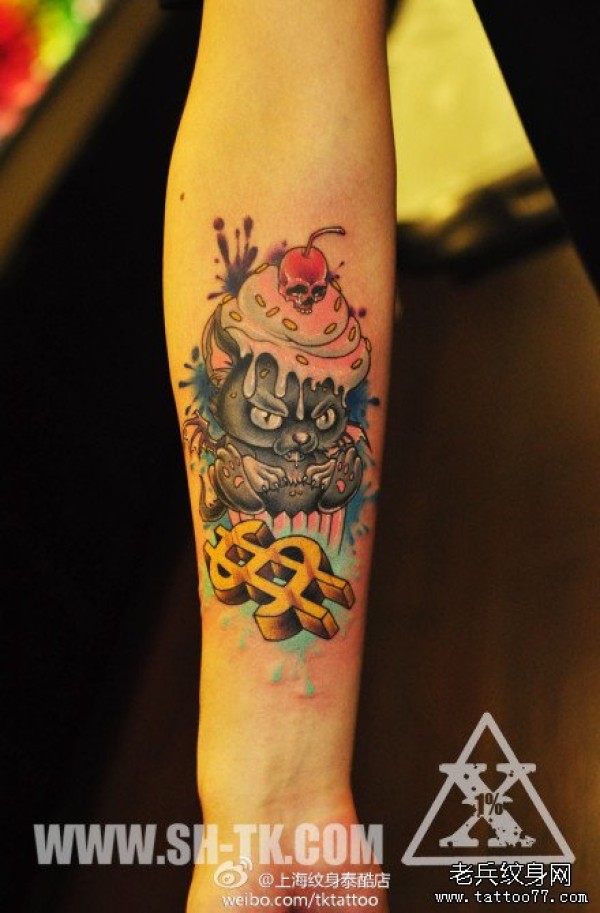 女孩子手臂小老鼠与冰激凌纹身图案_臂部纹身图案大全_纹身图吧