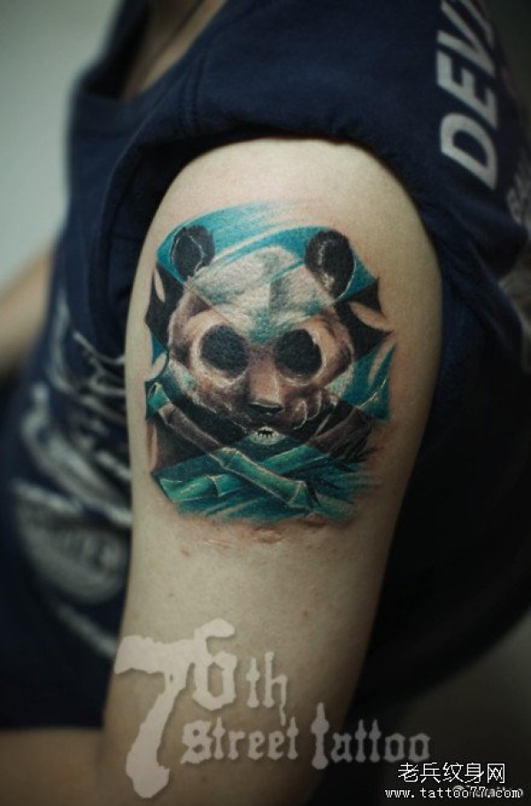 手臂潮流经典的一款熊猫纹身图案_臂部纹身图案大全_纹身图吧