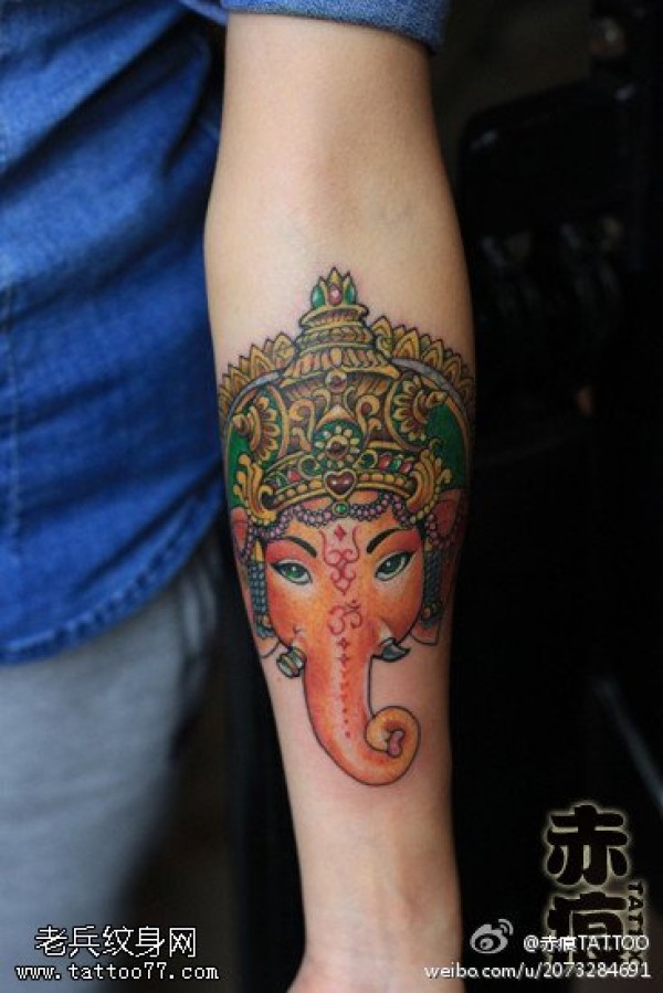 手臂彩色象神纹身图案_臂部纹身图案大全_纹身图吧
