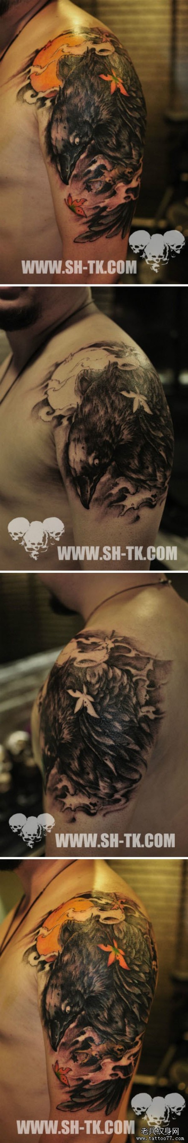 手臂一款帅气潮流的乌鸦纹身图案_臂部纹身图案大全_纹身图吧