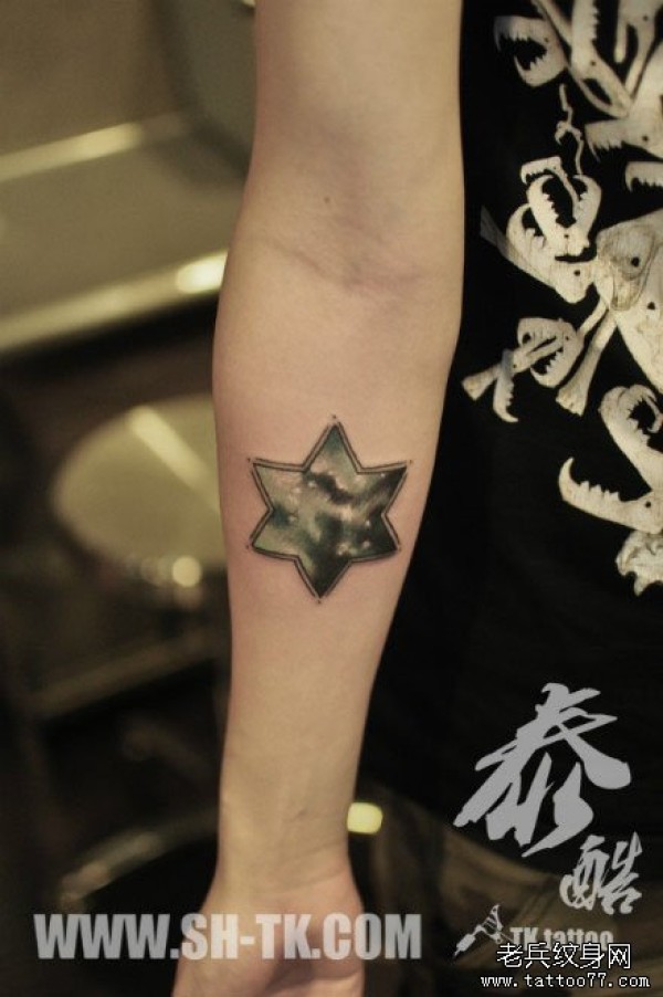 手臂精美潮流的星空六芒星纹身图案_臂部纹身图案大全_纹身图吧