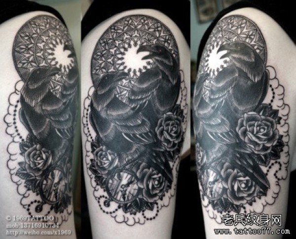 手臂潮流很酷的一款乌鸦纹身图案_臂部纹身图案大全_纹身图吧