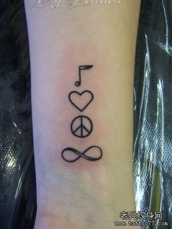 女孩子小手臂音符反战无限爱心图标纹身图案_臂部纹身图案大全_纹身图吧