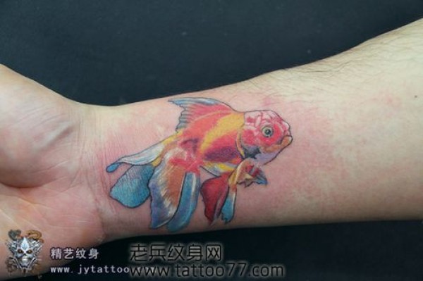 女孩子喜欢的手臂彩色小金鱼纹身图案_臂部纹身图案大全_纹身图吧