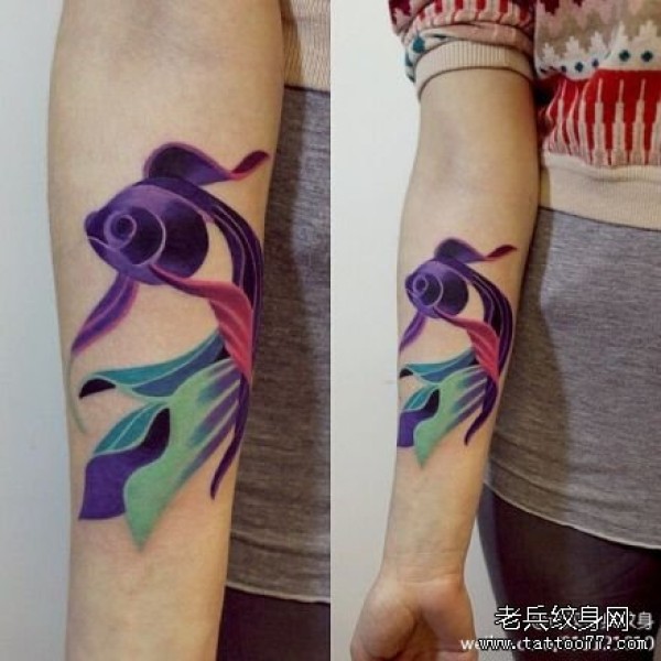 一款彩色手臂金鱼纹身图案_臂部纹身图案大全_纹身图吧