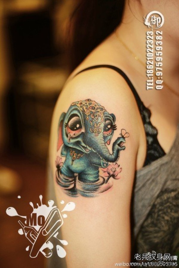 手臂可爱潮流的小象纹身图案_臂部纹身图案大全_纹身图吧