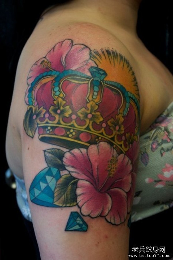 女人手臂唯美好看的彩色皇冠纹身图案_臂部纹身图案大全_纹身图吧