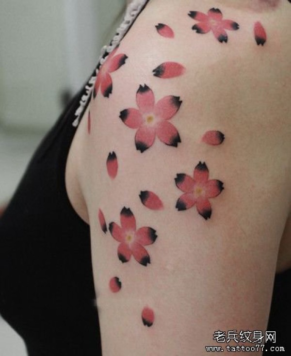手臂樱花纹身_臂部纹身图案大全_纹身图吧