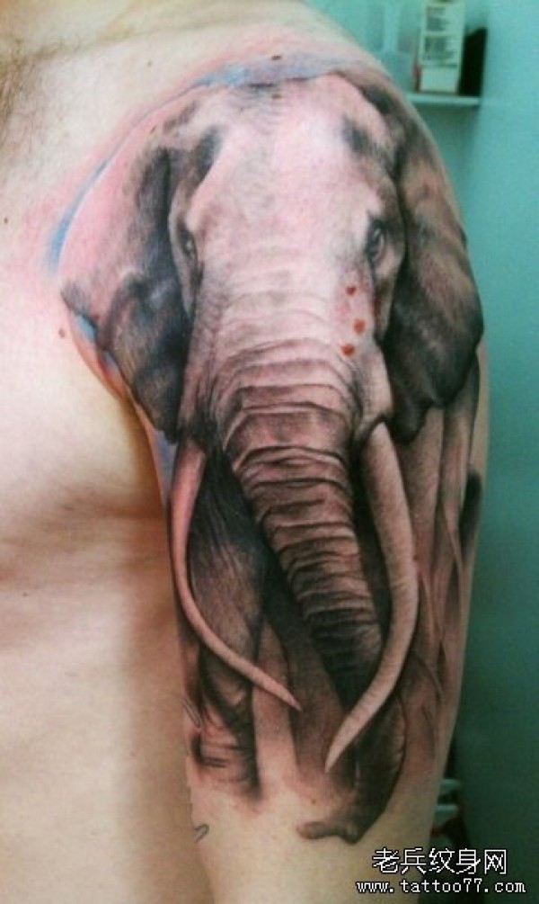 大臂上一款写实的大象纹身图案_臂部纹身图案大全_纹身图吧