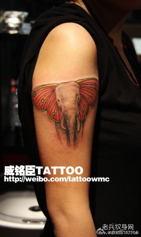 手臂经典的一款大象纹身图案_臂部纹身图案大全_纹身图吧