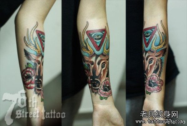 手臂时尚精美的小鹿纹身图案_臂部纹身图案大全_纹身图吧