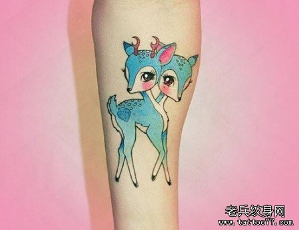 66纹身图库推荐一款手臂小鹿纹身图案_臂部纹身图案大全_纹身图吧