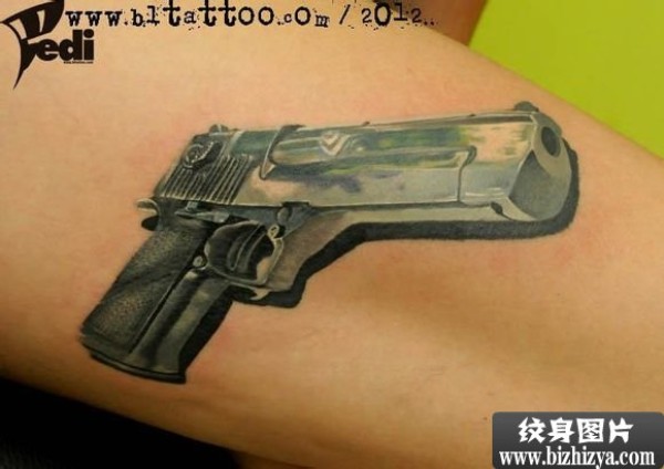 手臂上的逼真手枪纹身图案_臂部纹身图案大全_纹身图吧