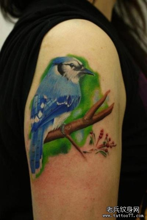 女孩子手臂一款彩色小鸟纹身图案_臂部纹身图案大全_纹身图吧