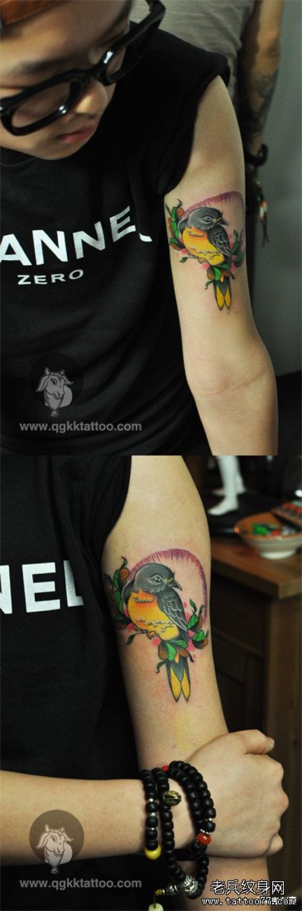 男生手臂漂亮时尚的小鸟纹身图案_臂部纹身图案大全_纹身图吧