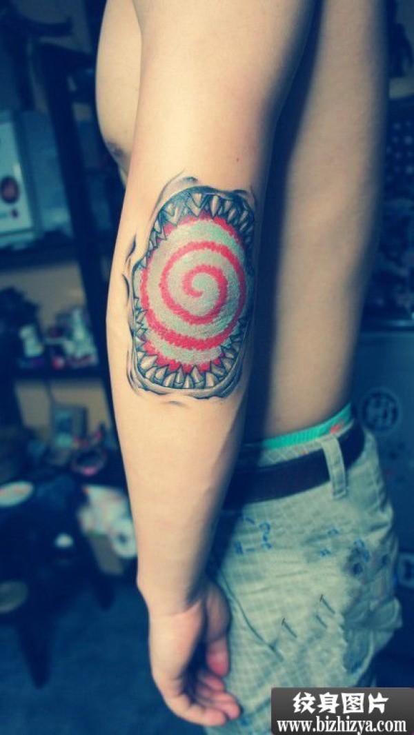 创意红色旋涡手臂纹身图案图片_臂部纹身图案大全_纹身图吧