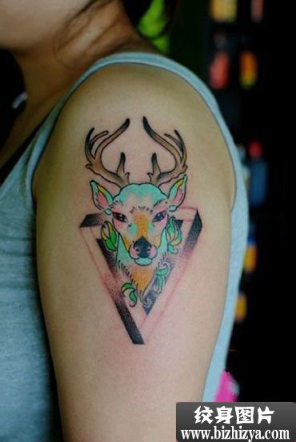 创意麋鹿手臂纹身图案图片_臂部纹身图案大全_纹身图吧