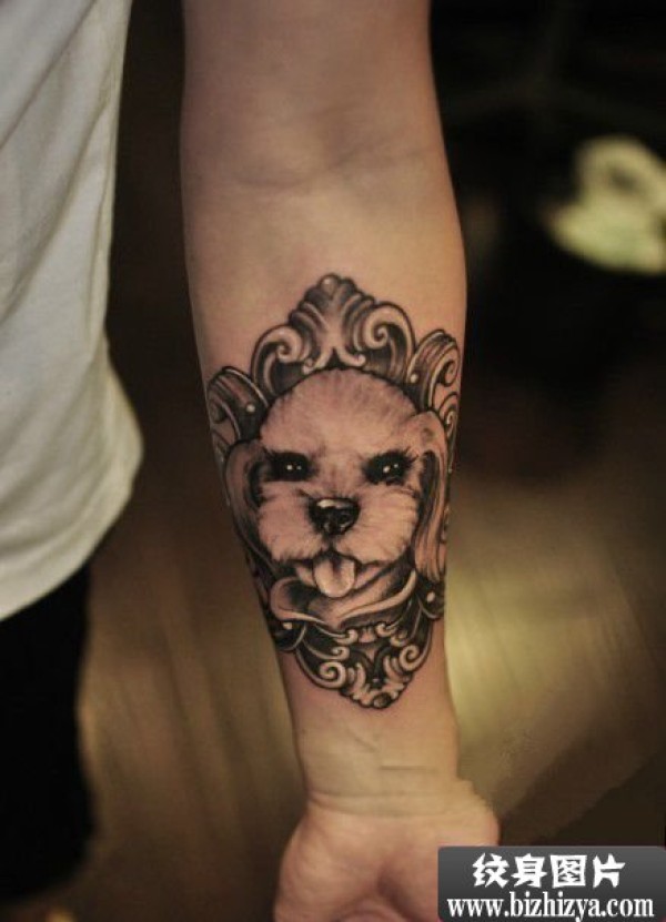 可爱狗狗头像手臂纹身图案图片_臂部纹身图案大全_纹身图吧