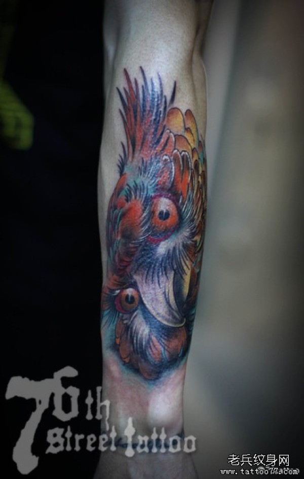 手臂时尚经典的一款彩色猫头鹰纹身图案_臂部纹身图案大全_纹身图吧