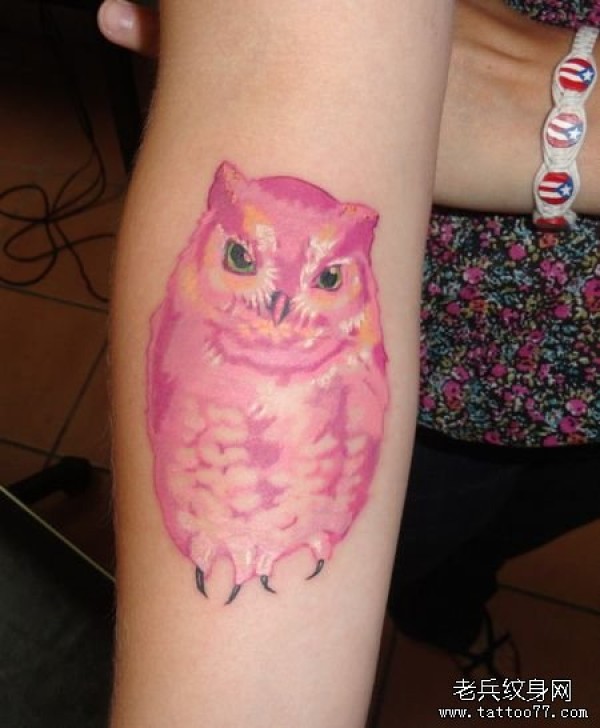 手臂一款彩色猫头鹰纹身图案_臂部纹身图案大全_纹身图吧