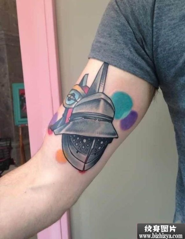 个性头盔手臂纹身图案图片_臂部纹身图案大全_纹身图吧