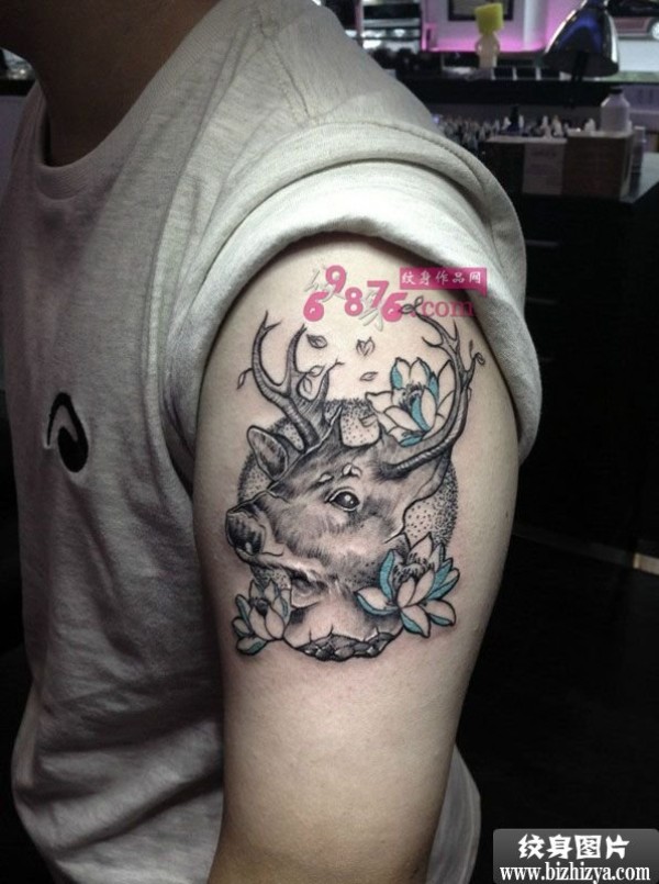 鹿头手臂时尚纹身图案图片_臂部纹身图案大全_纹身图吧