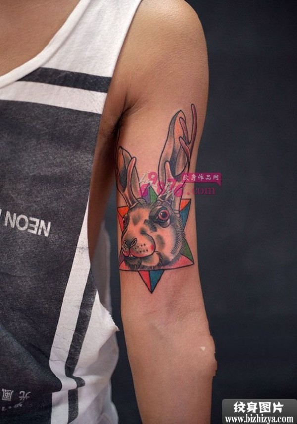 创意鹿头像手臂纹身图案图片_臂部纹身图案大全_纹身图吧