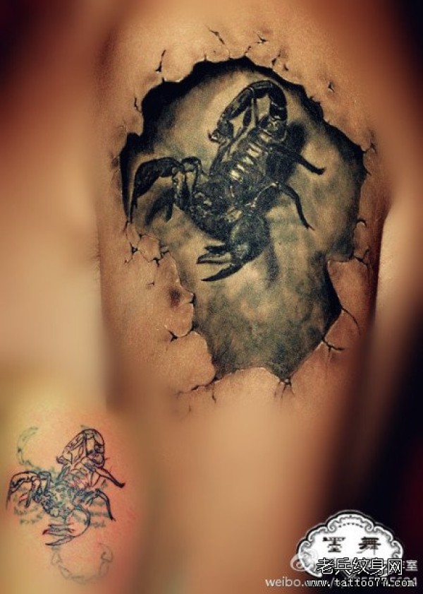 手臂经典很酷的写实蝎子纹身图案_臂部纹身图案大全_纹身图吧