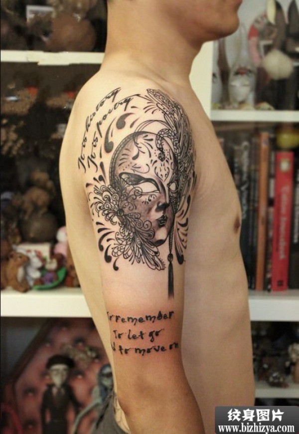 威尼斯面具复古手臂纹身图案图片_臂部纹身图案大全_纹身图吧