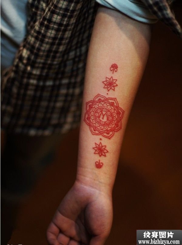 红色梵花手臂刺青图案图片_臂部纹身图案大全_纹身图吧